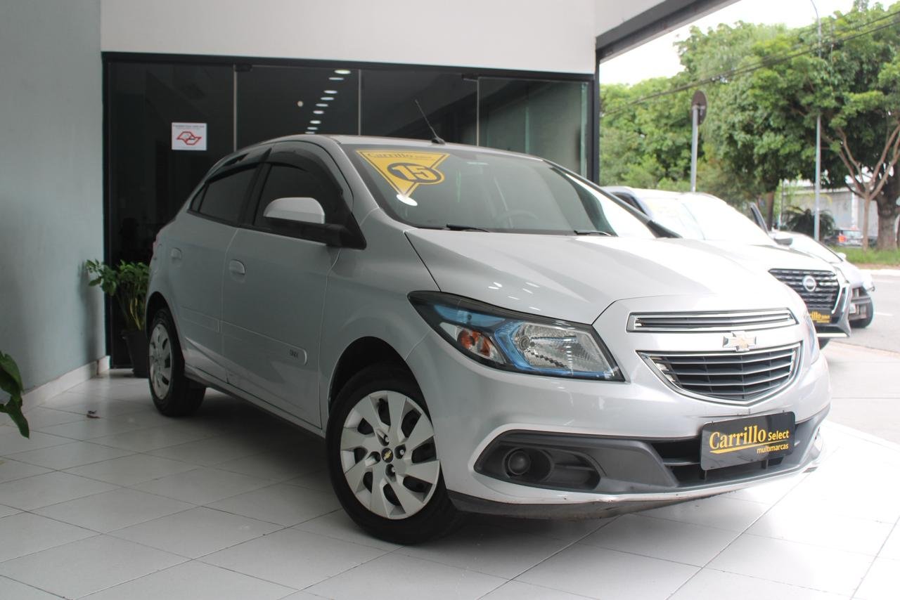 Chevrolet Onix um ponto quatro MPFI LT oito válvulas flex quatro portas manual ano dois mil e quinze na cor prata. Hatch econômico, confortável e muito valorizado no mercado. Equipado com ar condicionado, direção hidráulica, vidros e travas elétricas, airbag, freios com sistema antitravamento, computador de bordo e som original. Oferece bom espaço interno, porta malas adequado e manutenção acessível. Ideal para quem busca praticidade, segurança e ótimo custo benefício no dia a dia.